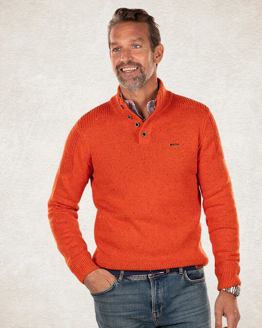Pull uni avec demi-patte de boutonnage - Ginger Orange