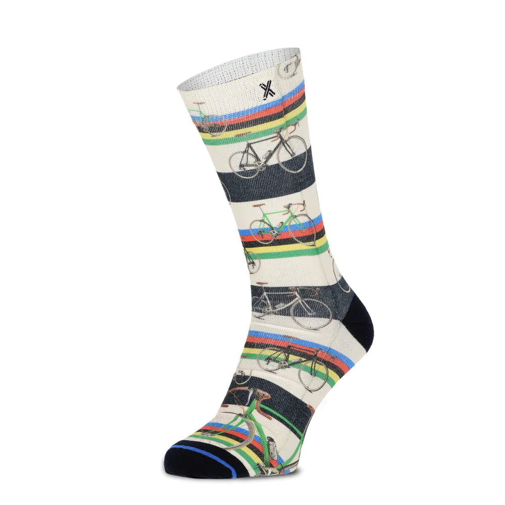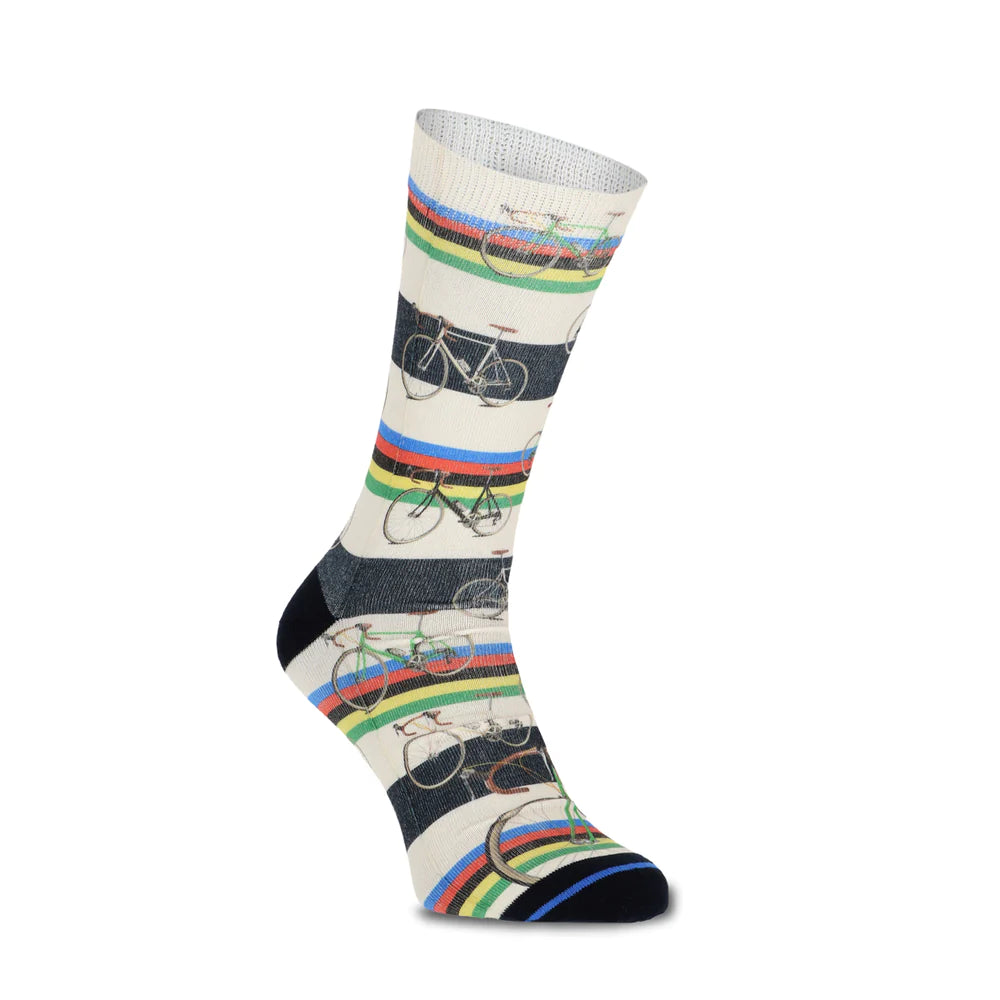 Crazy about cycling? Check out these crazy cycling socks! Pull these cool socks out of your drawer in the morning and you’ll be in the break-away all day long. Wear under your jeans with turn-ups or pull them up high with your shorts or Bermudas to leave the fashion peloton far behind!