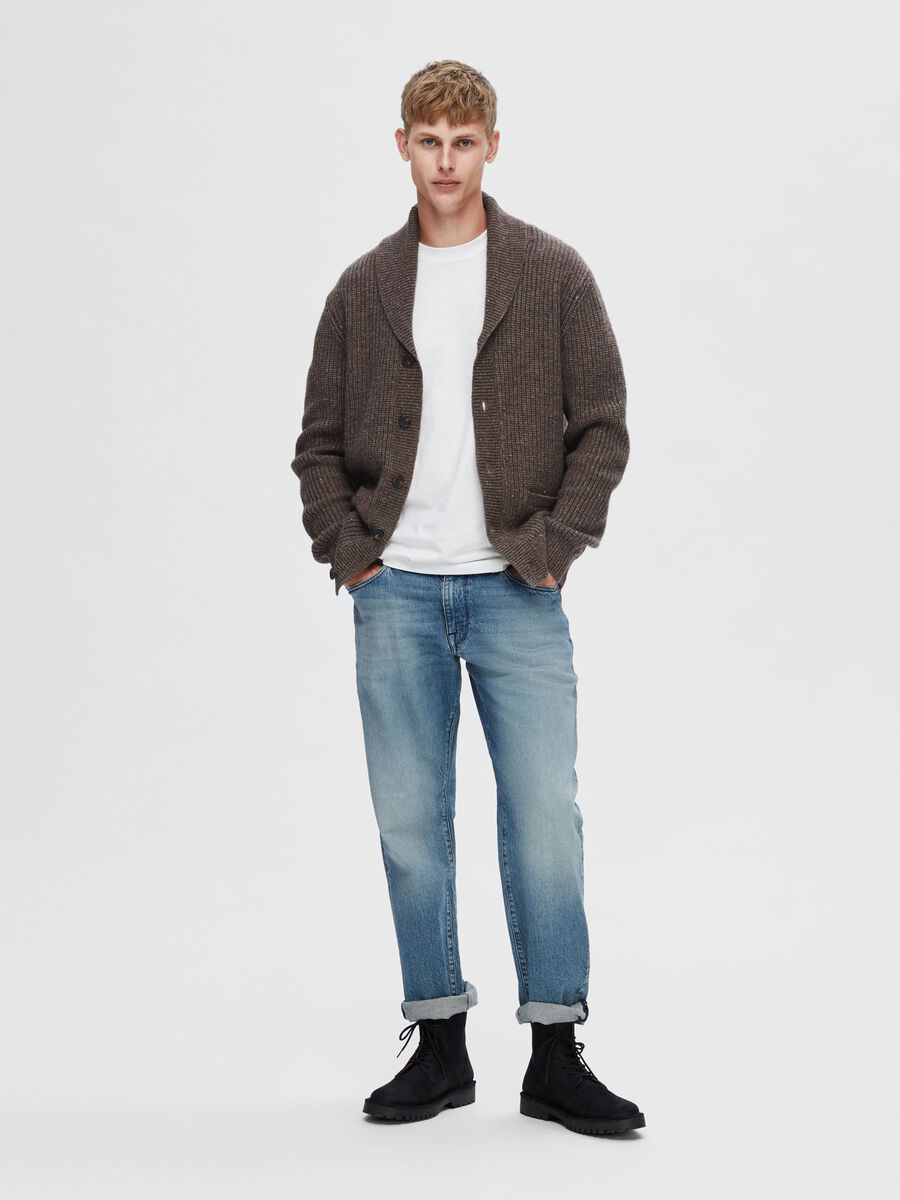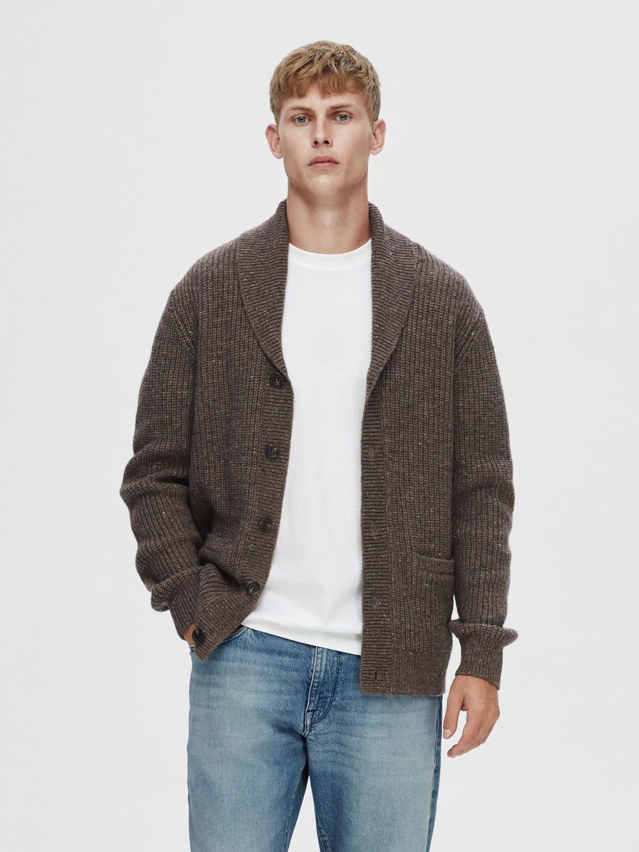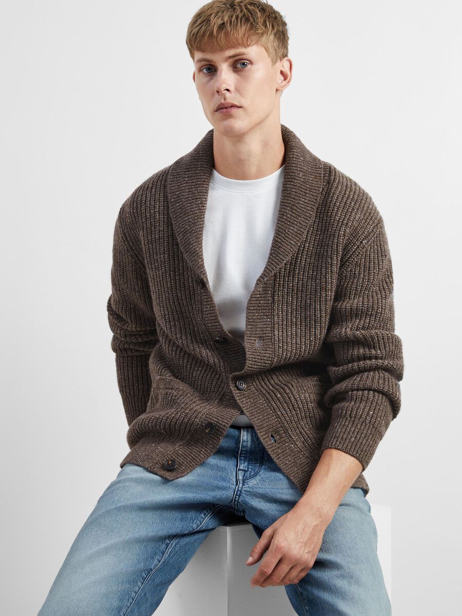 Avec un cardigan classique comme celui-ci, il n'y a aucun risque de faux pas. Il est fabriqué en laine, ce qui en fait un véritable bijou de douceur, de chaleur et de durabilité. Son revers châle apporte une touche sophistiquée s'inspirant des détails classiques du tailleur. Portez avec une chemise à carreaux, un chino et des bottes en daim.