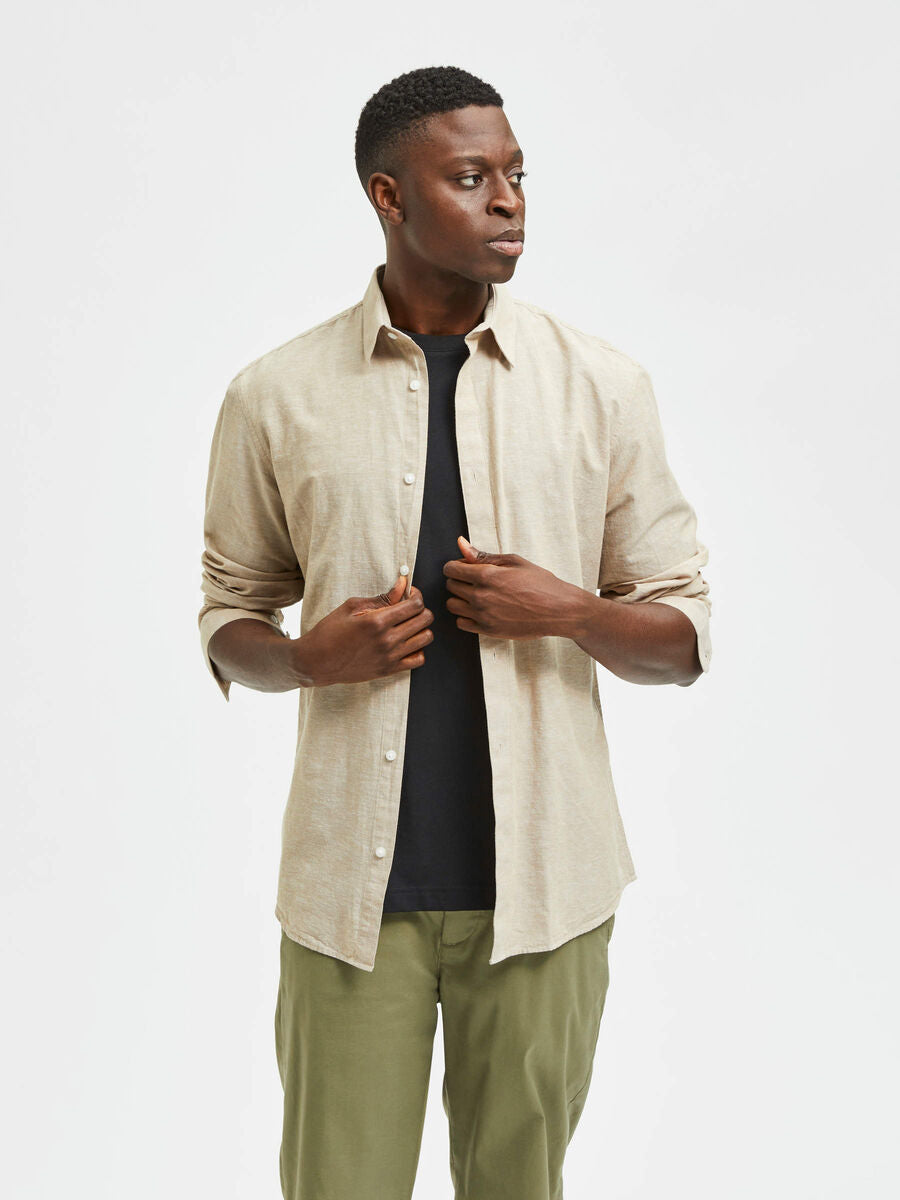 Le lin est idéal à tout moment de l'année. Il est respirant et léger, ce qui le rend idéal pour les températures chaudes de l'été et parfait comme pièce de superposition en hiver. Les poignets de la patte de boutonnage peuvent être retroussés si vous souhaitez obtenir un look plus décontracté ou rester boutonnés lorsque vous les portez sous un pull. Nous vous suggérons de compléter votre tenue avec un pantalon chino ajusté et une paire de bottes en daim. - Col classique - Bouton sur le devant - Manches longues ajustées aux poignets - Ourlet incurvé -\Mélange de coton et de lin - Coupe classique