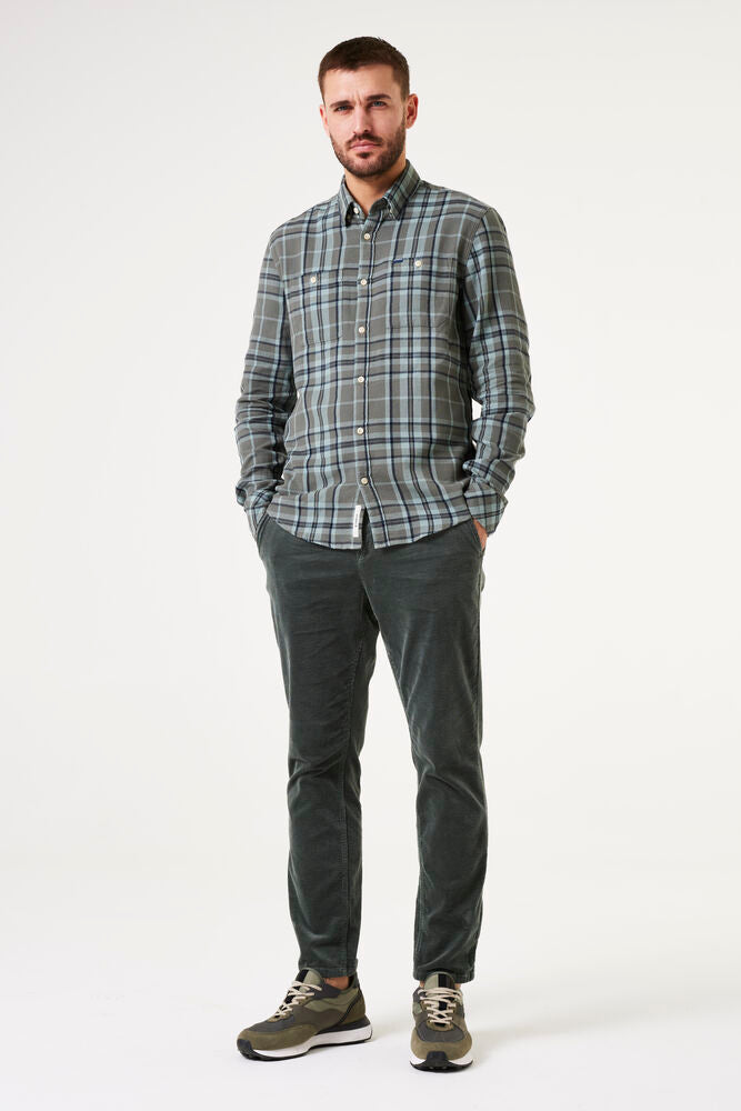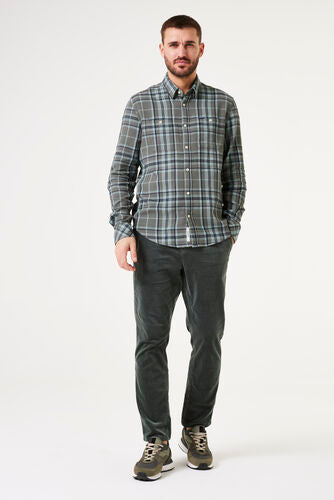 Corduroy trousers with tapered leg. A stylish item perfect for autumn. These trousers feature a relaxed waist, a button and zipper closure, and a regular fit. Made of 99% cotton and 1% elastane.