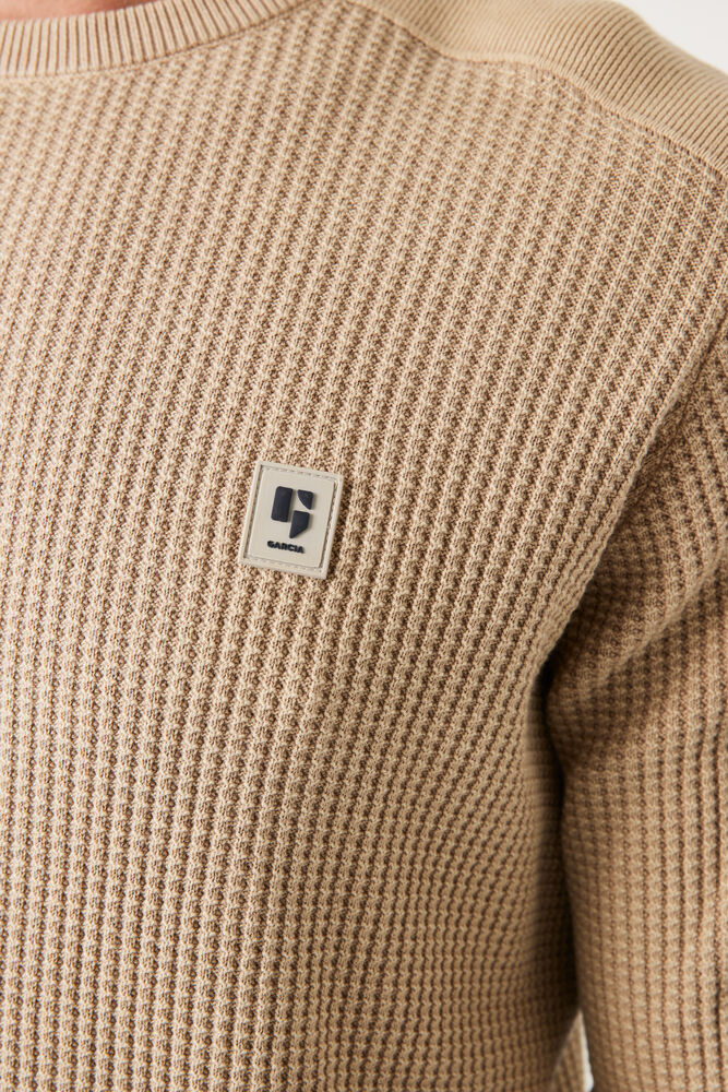 Structured jumper with GARCIA logo. A good basic like this should not be missing in your wardrobe! This jumper has long sleeves, a round neck and a regular fit. This item is made of 100% cotton.