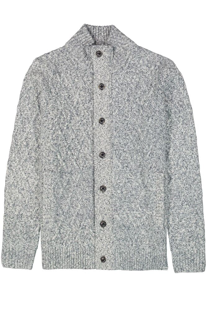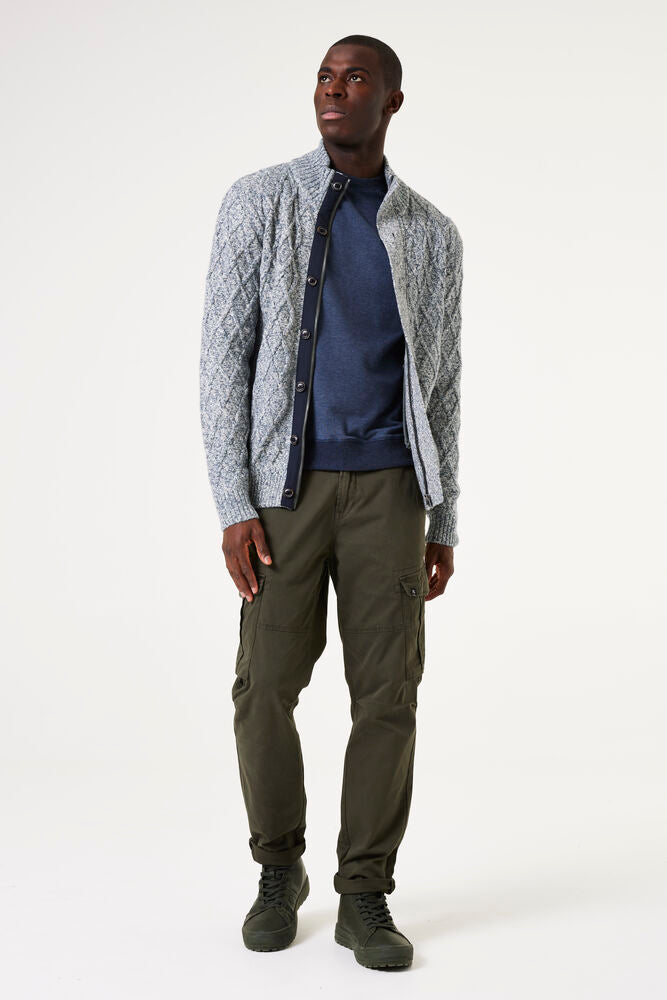 Mélange vest with knit pattern. A must-have for your autumn wardrobe. This vest has long sleeves, a stand-up collar, a button and zip closure, and a regular fit.