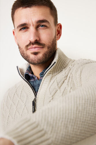 Sweater with knit pattern and GARCIA logo badge. Essential for the modern man this autumn. This sweater has long sleeves, a stand-up collar with zip closure, and a regular fit. This item is made of 100% cotton.