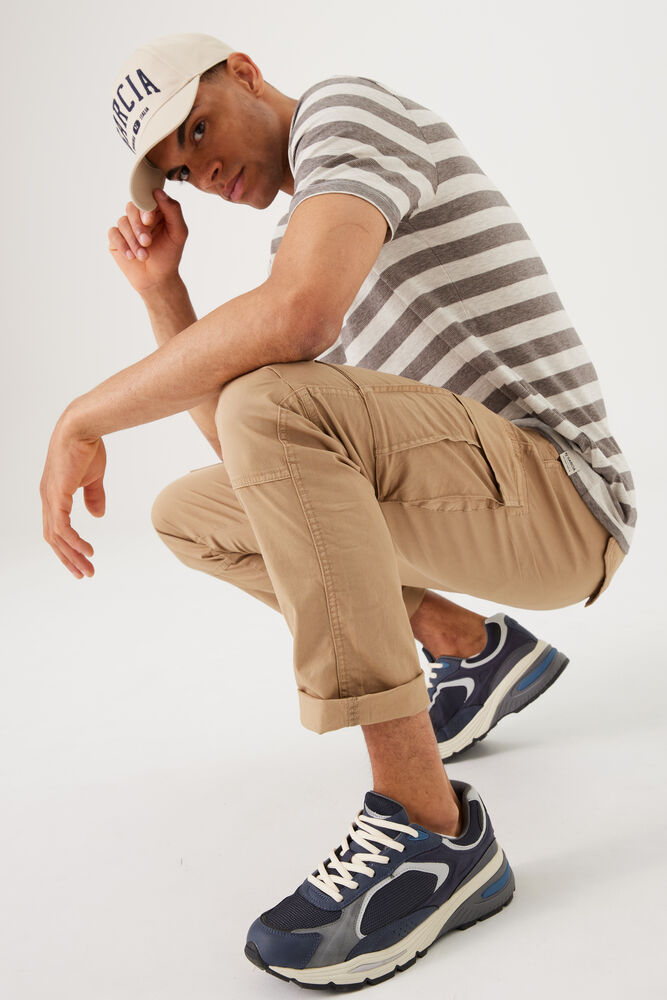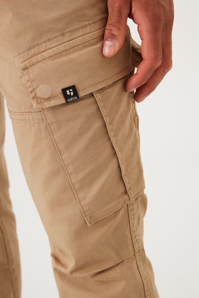 Classic cotton twill cargo trousers. The trousers have a tapered leg, a button and zipper closing and a regular fit. This item is made of 98% cotton and 2% elastane.