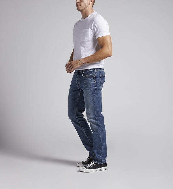 Élégant et épuré de la hanche à la cheville, Konrad est une coupe slim plus droite. Il se situe sous la taille et présente une coupe slim légèrement plus ample au niveau des hanches et des cuisses. Fini avec une ouverture de jambe mince classique de 14 pouces au quotidien.
