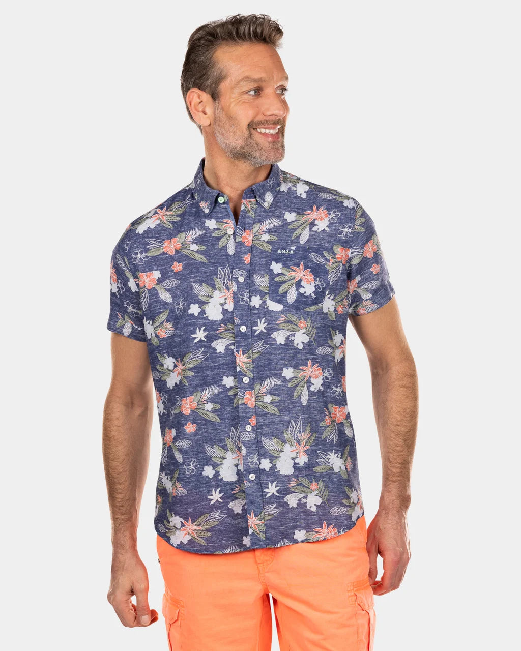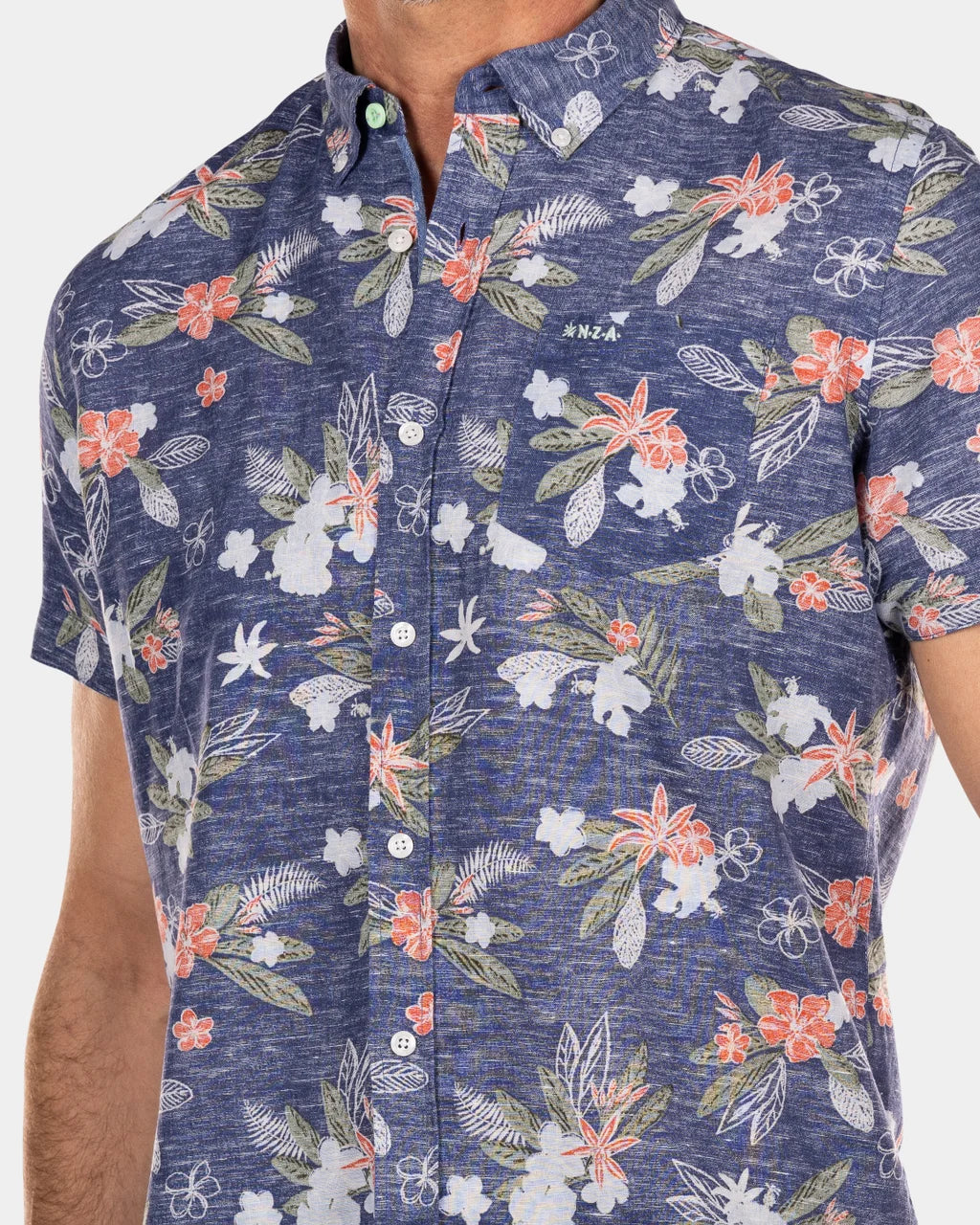 If we could influence the weather with the things we wear, with the Tennants the 2024 summer will be perfect. The Tennants breathes sunshine, beach, long days and soultry evenings. This linen cotton short sleeved men's shirt can be combined just as easily with a jeans or a NZA New Zealand Auckland chino, as with shorts or swimming pants. Bring on that perfect summer, with the Tennants! Available in Dusk Navy