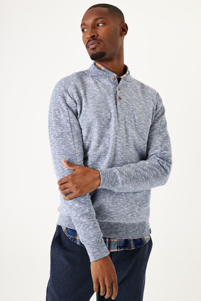 Pull avec structure. Cet article est indispensable cette saison. Ce pull a des manches longues, un décolleté serafino et une coupe classique. Cet article est composé de 85% coton, 12% acrylique et 3% élasthanne.