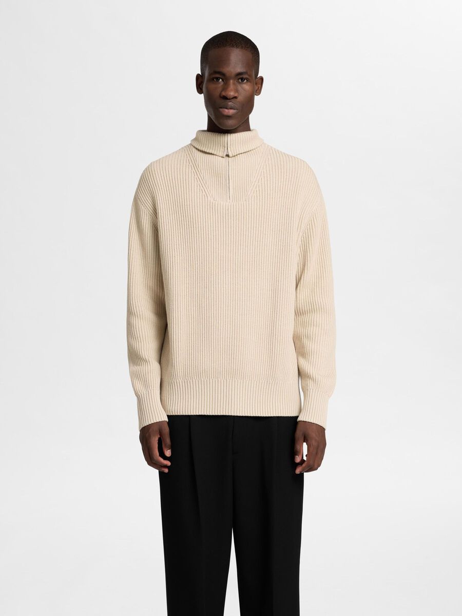 Nothing beats a soft jumper. This one is made from 100% organic cotton, making it exceptionally soft and lightweight, and features a sporty zip fastening that you can zip up all the way or leave undone, depending on the weather. Style it with straight-leg jeans and leather trainers. - High neck - Half-zip placket - Dropped shoulders - Long sleeves - Ribbed trims - Made from 100% cotton - Relaxed fit