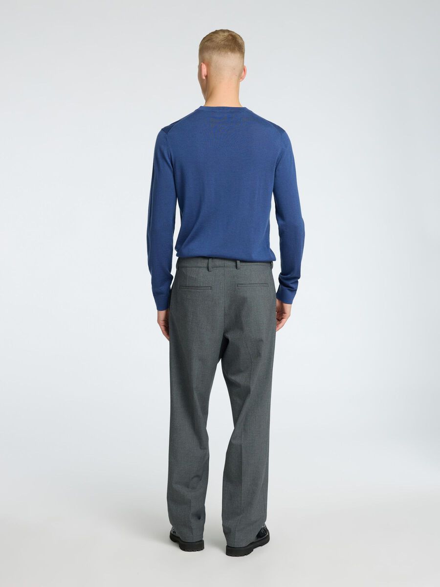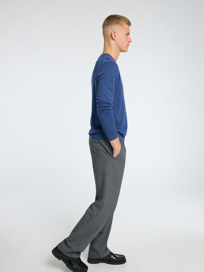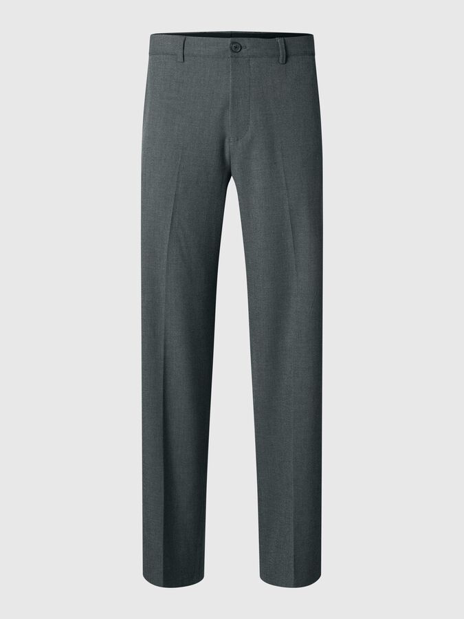 These classic loose-fit trousers feature a comfortable mid-rise and a loose leg from the knee down, giving you enough room to move while maintaining an effortlessly put-together look. They’re made with elastane for a flex fit that’s ultra-comfortable to wear all day but feature press folds for a traditional tailored touch. Style them with a cotton Oxford shirt, a knitted vest, and suede loafers. - Mid waist - Zip-up fly with button fastening - Belt loops - Slashed side pockets - Centre press folds - Loose fit.