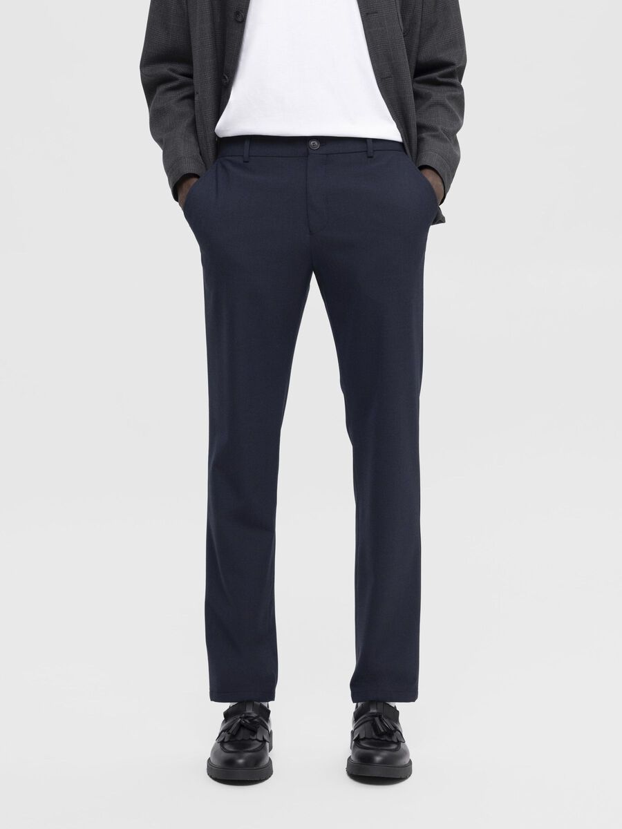 These classic trousers are a must-have for every man’s wardrobe. They come in a flattering slim fit that features a fitted thigh and tapered, slim leg from the knee down, making them as comfortable as they are versatile. Wear them with a printed shirt and a linen-blend blazer for a sophisticated take on summer tailoring. - Mid-waist rise - Zip-up fly with button fastening - Belt loops - Slashed side pockets - Welted back pockets - Slim fit