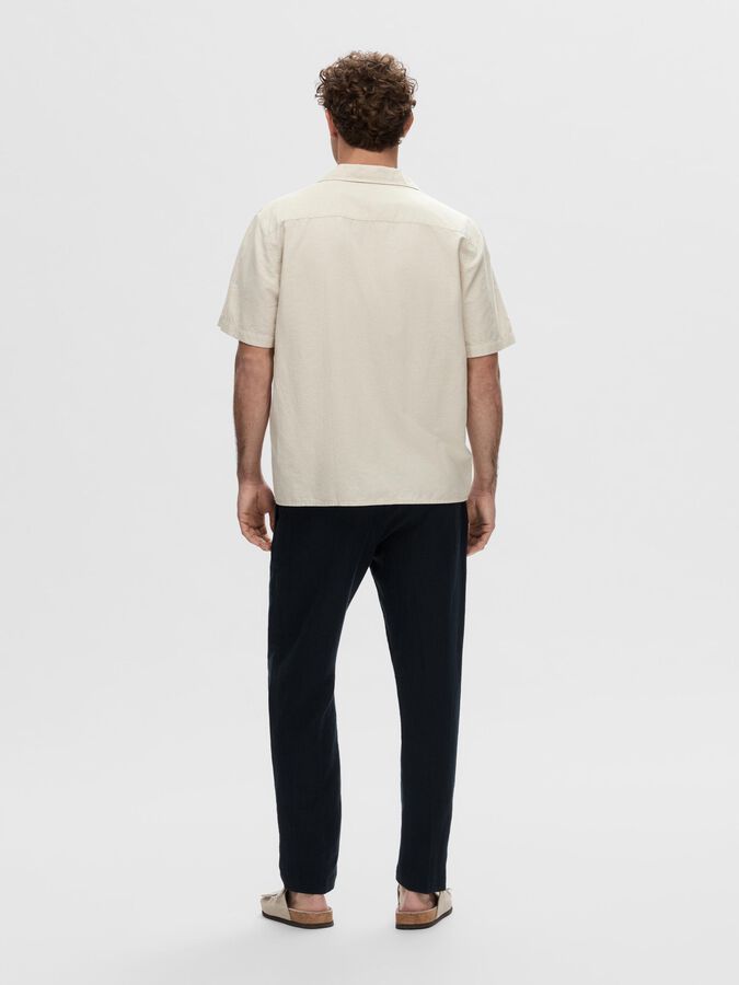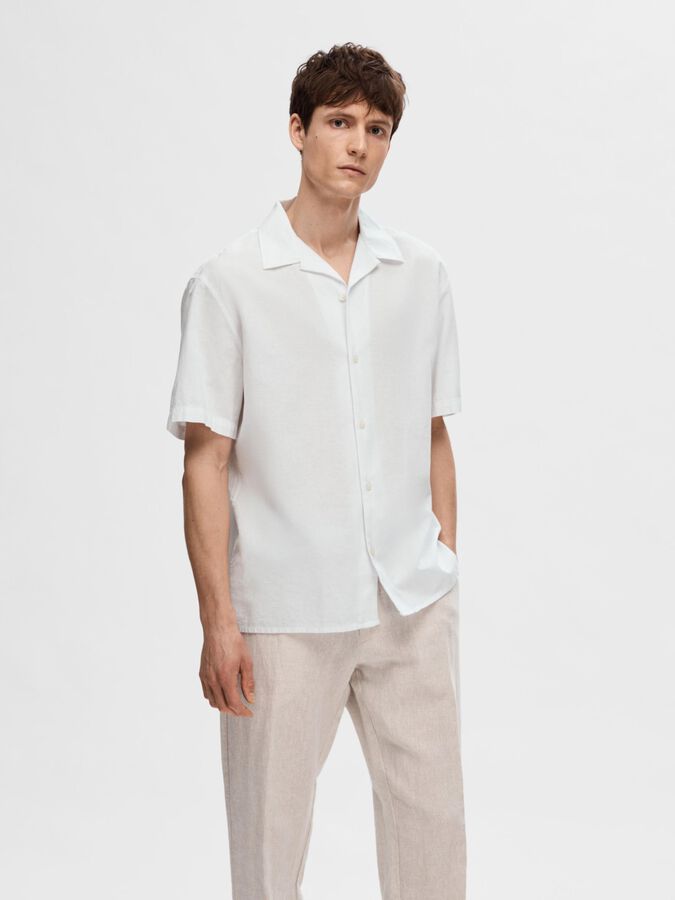 Get in that resort mindset with our newest short-sleeved shirt made from a lightweight cotton-linen blend. It’s got a laid-back collar and a button-up front that you can leave open over a T-shirt and features either a plain colour or a fun print. Wear it with denim shorts and sandals. - Spread collar - Button-up front - Short sleeves - Made with cotton and linen - Relaxed fit