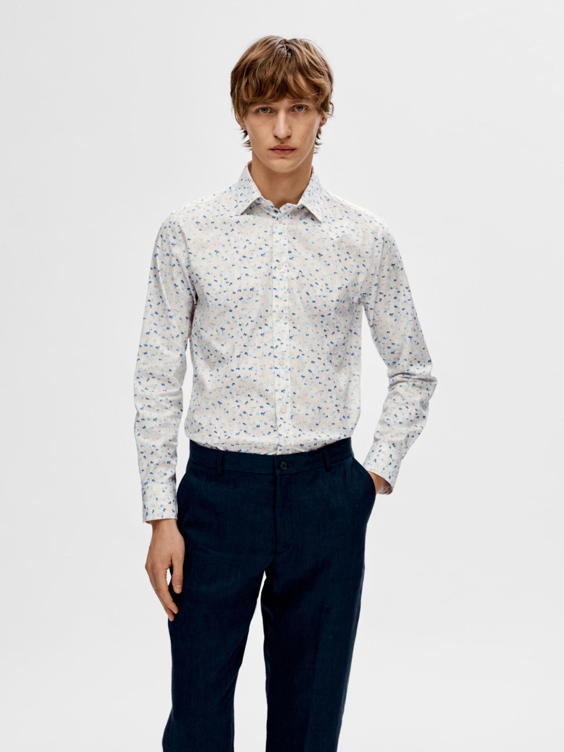 A printed shirt is a must-have in every modern man’s wardrobe. This one is made from organic cotton and comes in a versatile slim fit that accentuates your natural physique. Wear it under a tailored blazer or with chinos to the office. - Regular collar - Button-up front - Long sleeves with buttoned cuffs - Curved hemline - Slim fit