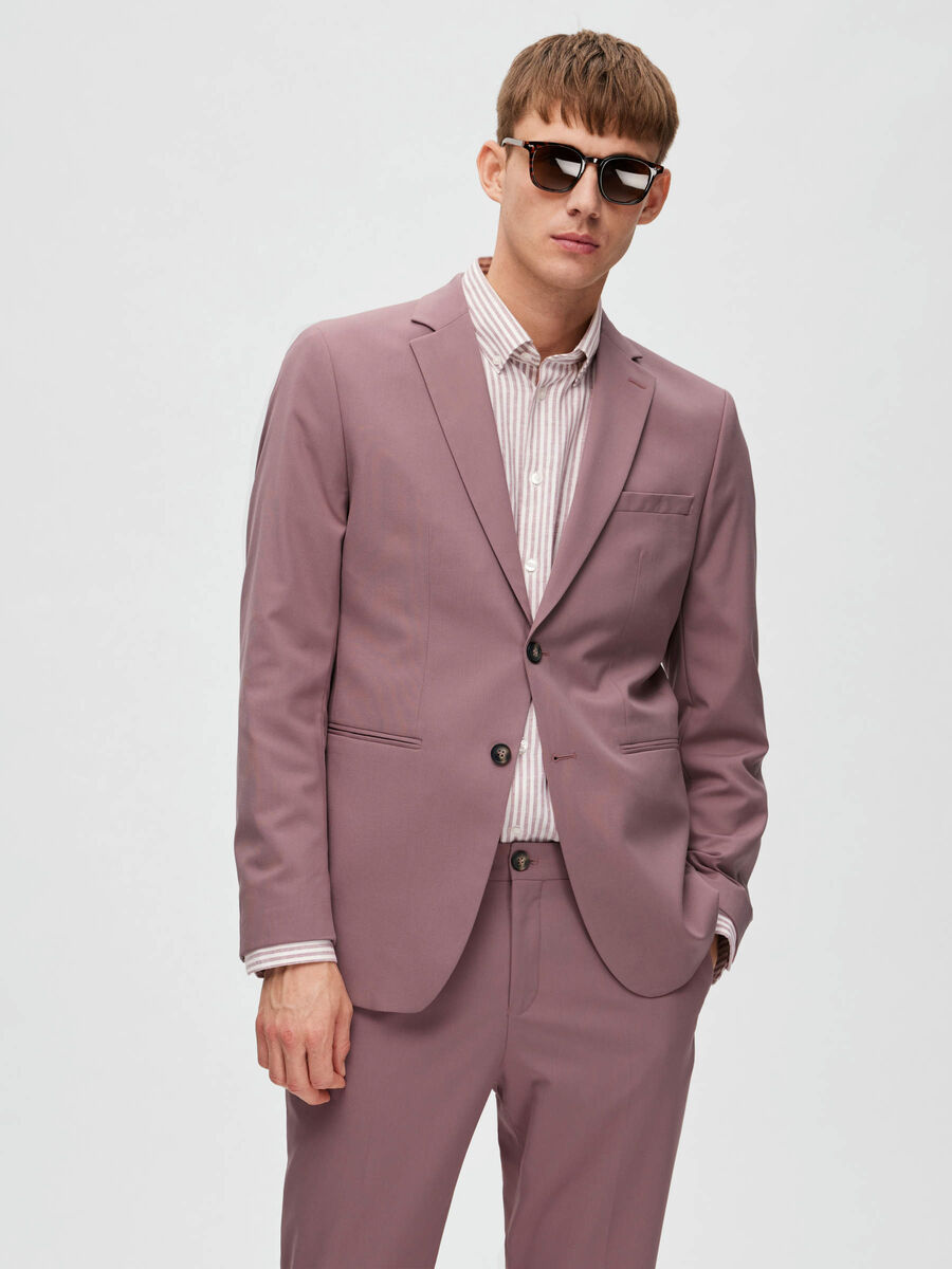 What’s more sophisticated than a well-tailored blazer? This single-breasted blazer comes with notched lapels and is crafted in a slim fit, meaning it accentuates your natural build. The buttoned cuffs match the fastenings at the front, and there are plenty of pockets to store your valuables. It’s even made from recycled materials, making it a more sustainable addition to your tailoring collection. Style it with our matching slim-fitting trousers (you can even mix and match colours), a white shirt, and a pair of leather derby shoes. Add a pocket square if you’re feeling extra fancy. - Single-breasted - Notched lapel with buttonhole detail - Long sleeves with buttoned cuffs - Welted chest pocket - Jetted front pockets - Double vents - Fully lined - Slim fit