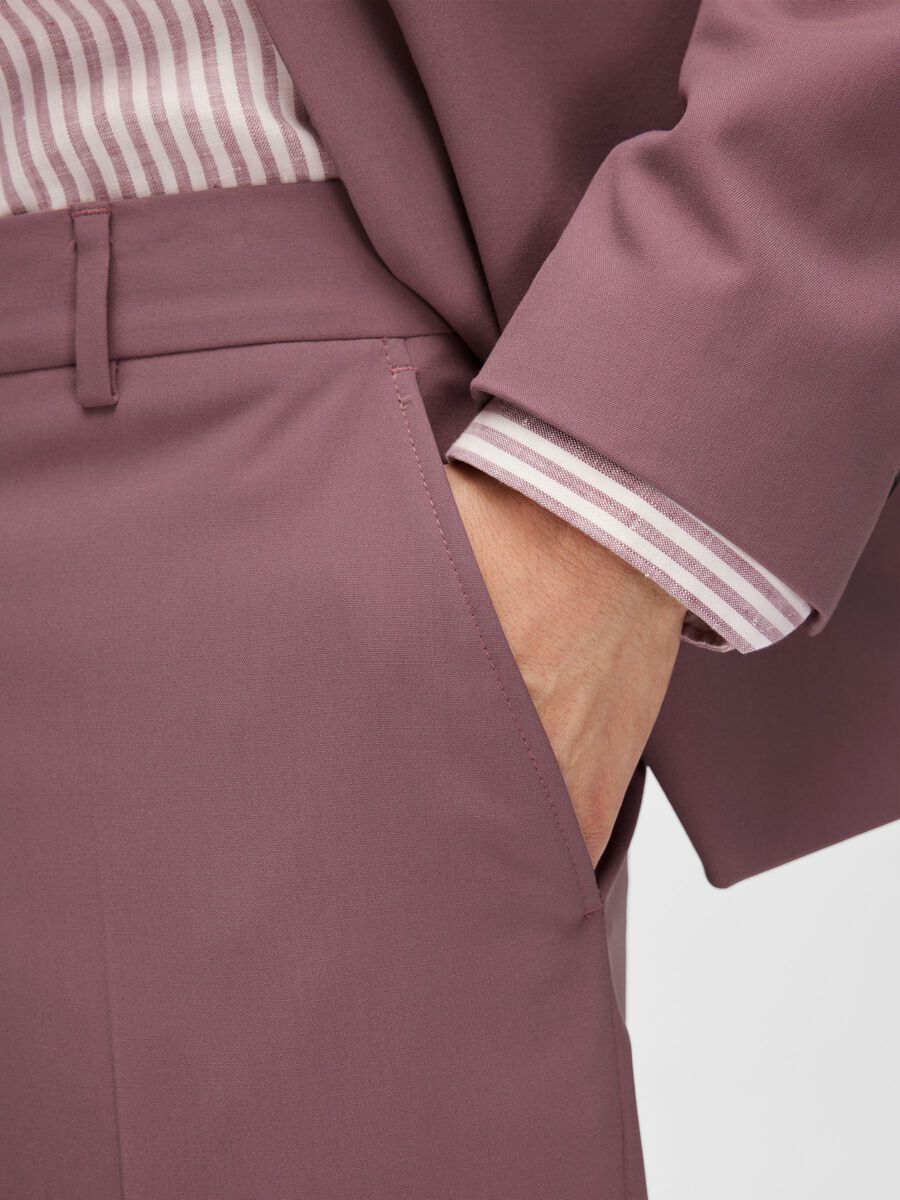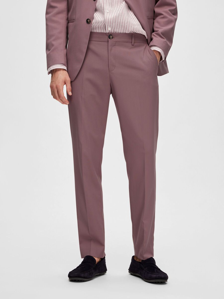Level up your tailoring with this pair of suit trousers. They come with a comfortable mid-waist rise and accompanying belt loops and feature sophisticated centre press folds. They’re cut in a slim fit, meaning they fit tighter at the thigh before tapering at the leg. Wear them with one of our matching blazers and a patterned shirt. - Mid-waist rise - Zip-up fly with button fastening - Belt loops - Slashed side pockets - Jetted back pockets with button details - Front and back centre press folds - Slim fit