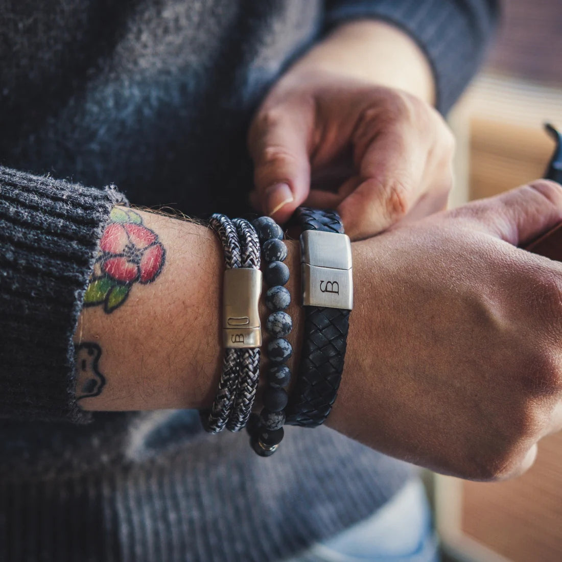 Get back to the basics. Fundamental for every modern gent's jewelry collection, these stretchy stone bead bracelets can be worn as single strands or stacked up as desired.