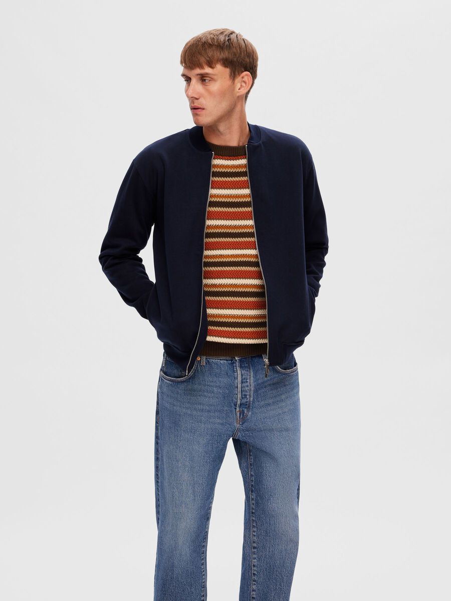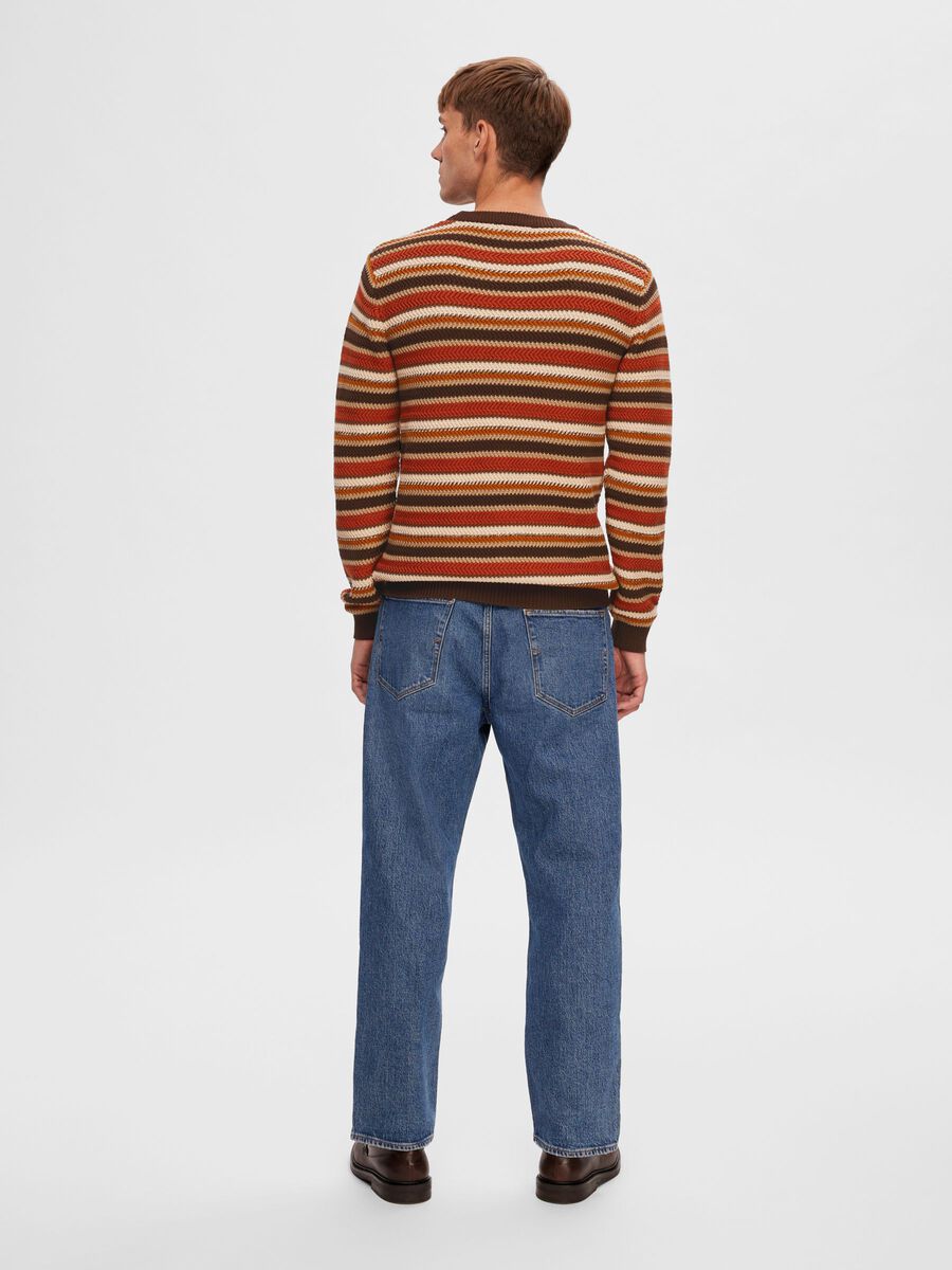 Cette saison, nous nous sommes associés à des spécialistes pour créer des pulls avec de nouveaux motifs, textures et couleurs exclusifs, comme ce pull. Il se présente sous la forme d'un pull à chevrons raffiné au motif rayé coloré et est confectionné en coton biologique doux et respirant. Portez-le par-dessus un t-shirt et ajoutez un jean foncé pour un look d'automne infaillible. -\Col ras du cou côtelé - Manches longues avec poignets ajustés - Poignets et ourlet côtelés - Maille à chevrons - Motif à rayures - Coupe classique